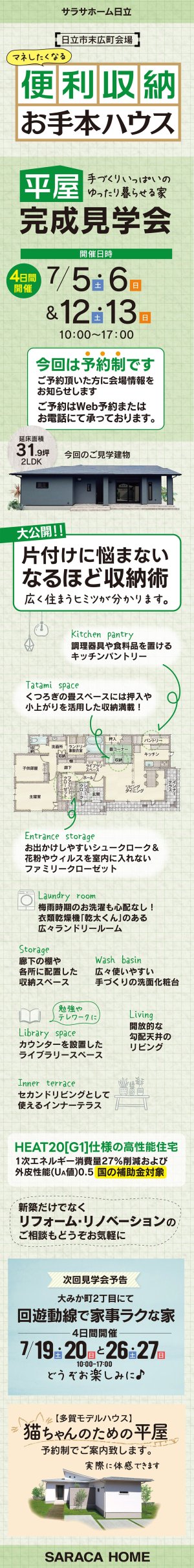 日立市末広町で、マネしたくなる便利収納のお手本的[平屋]の予約制完成見学会を開催致します。