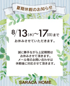 夏期休暇のお知らせ