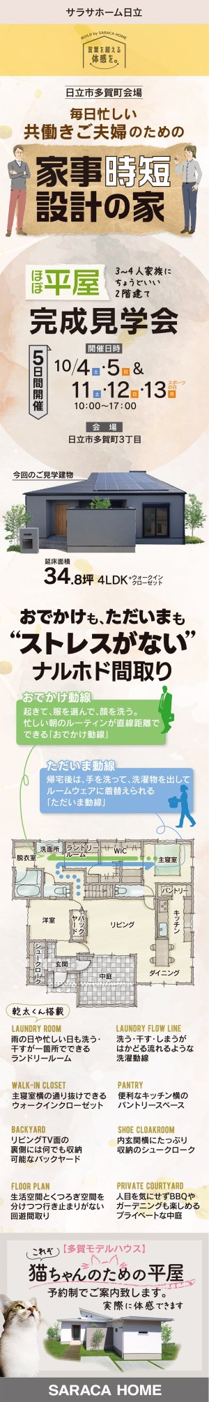 日立市多賀町3丁目で、毎日忙しい共働きご夫婦のための、家事時短設計の家の完成見学会を開催致します。
