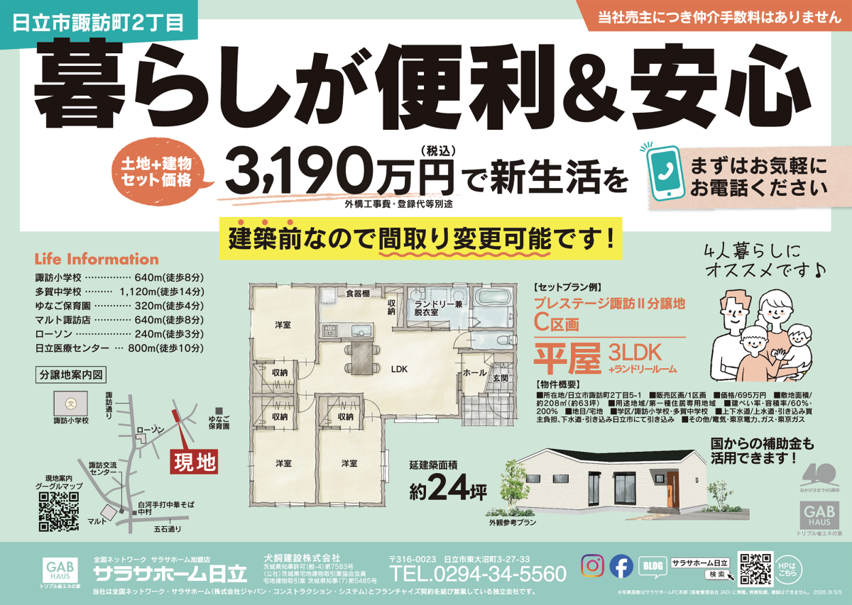 日立市諏訪町2丁目&日立市千石町2丁目のおすすめプランです(内覧会・オープンハウス)を開催。